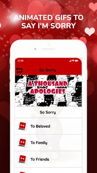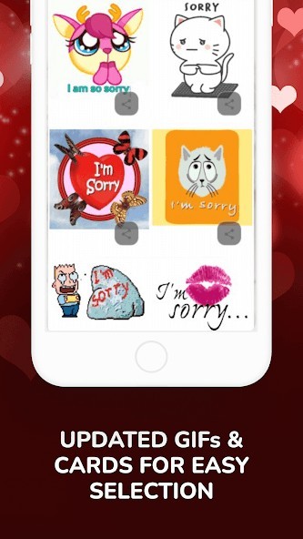 Apology I am Sorry Messages Cards Wishes GIFs App will be updated regularly with the latest Free I am sorry pictures photo images, so make sure that you keep coming back again to sync your smartphone to get the latest updated selection. We sincerely hope that our humble Apology I am Sorry Messages Cards Wishes GIFs App has helped you in one way or another. Please leave a review if you like our app so we will keep improving and developing quality apps exclusively for our users.