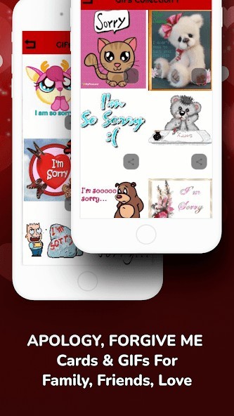 Apology I am Sorry Messages Cards Wishes GIFs App gives you access to the latest collections, apology I am sorry greeting cards & wishes in the form of ecards and animation GIFs. The greeting cards are perfect for all occasions. The apologetic images and apology messages with forgive me quotes are carefully selected to help you put the conflict behind and move on more easily.