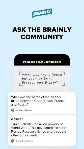 Solve Math problems in Algebra, Trigonometry, & Geometry with correct & expert-verified answers instantly. With Brainly, you can find solutions to your math homework. Math answers have never been easier to find! Just use our math scanner, ask our community, or chat with a tutor for one-on-one help with step-by-step solutions for your math homework problems.• 24/7 school homework app access - Unlimited access, anywhere, anytime with Brainly.