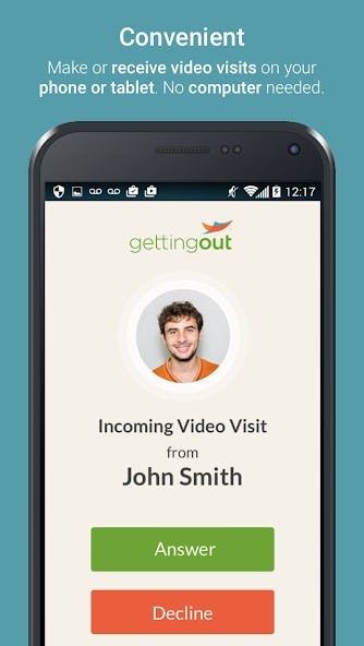 What if you could video visit your incarcerated loved one from your mobile device, and didn't even need a computer to do it? And what if they could start a visit with you? Now you both can!With our FREE GettingOut Visits app, keeping in touch with loved ones is easier and more flexible than ever. Plus with our new Visit Now feature, there's no scheduling needed. You can video visit on the spot – and you will only be charged for the actual visit time you use.