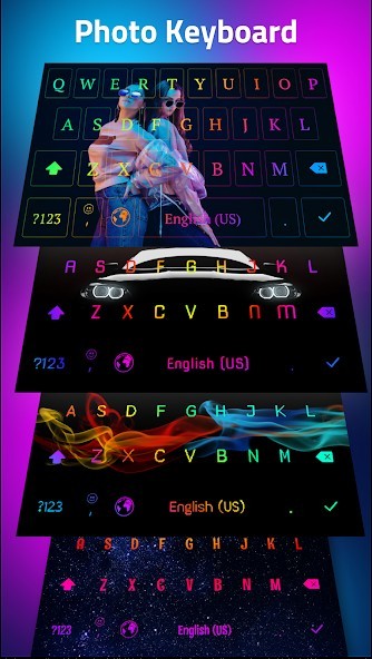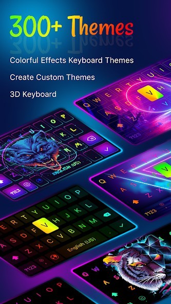 + Maker keyboard and customized backlit keyboard with many color RGB effect, neon effect, lighting effect glowing.+ Fast typing on the go - Glide typing - Swipe to text type faster by sliding your finger.