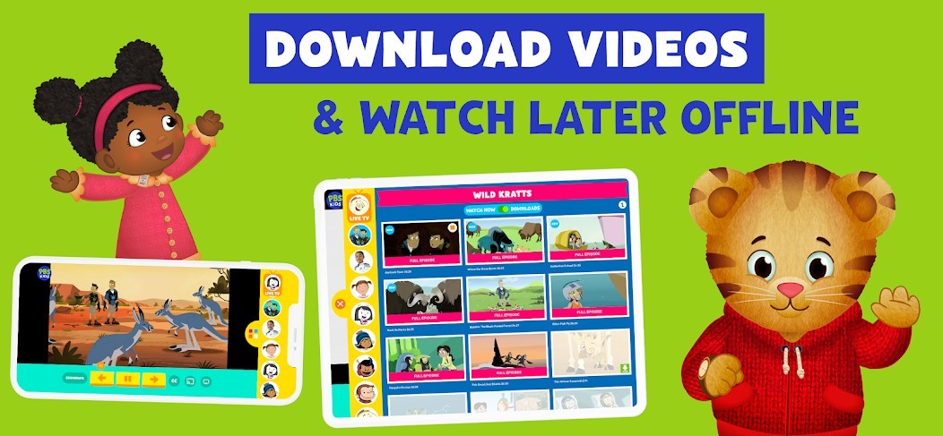 Watch live TV, stream, and download episodes with PBS KIDS Video! Safely stream videos from shows like Daniel Tiger’s Neighborhood, Wild Kratts, Sesame Street, Curious George, Odd Squad, Alma’s Way, and more!Download free episodes of safe entertainment for your kids wherever you are! Bring the fun of learning to your child, at home and on the road.