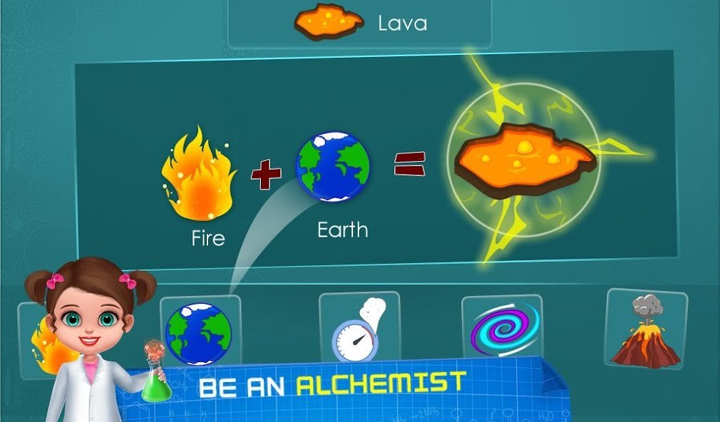 Just as the name suggest, you have to be an Alchemist in this level. Mix elements to create the element you have been asked in each levels. Every combination is a little puzzle in itself to solve. Try to unlock every elements that are shown in the right panel.